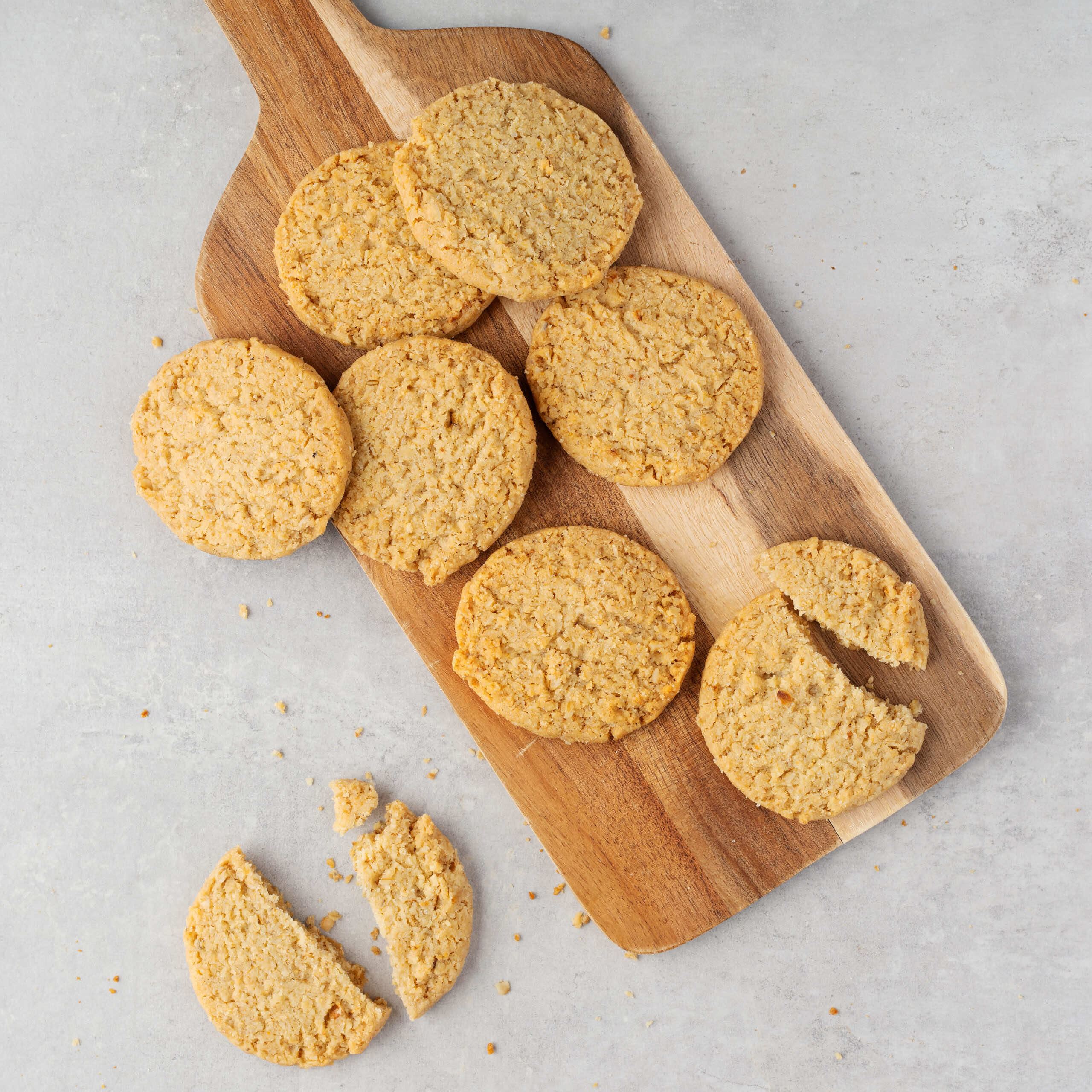Ingredienser: HAVREGRYN (29%), socker, VETEMJÖL, SMÖR, vegetabilisk olja (raps, kokos), fullhärdad rapsolja, vatten, salt, bikarbonat, VETEGLUTEN, arom, emulgeringsmedel (E471), surhetsreglerande medel (E330), KORNMALTMJÖL, Mjölbehandlingsmedel (E300). Kan innehålla spår av: ägg, hasselnötter, valnötter, mandel och sesamfrön.